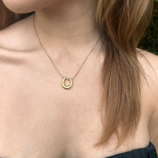 Collar con Charm de Herradura y Cadena Tipo Snake en Stainless Steel Dorado 18K