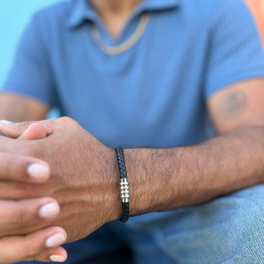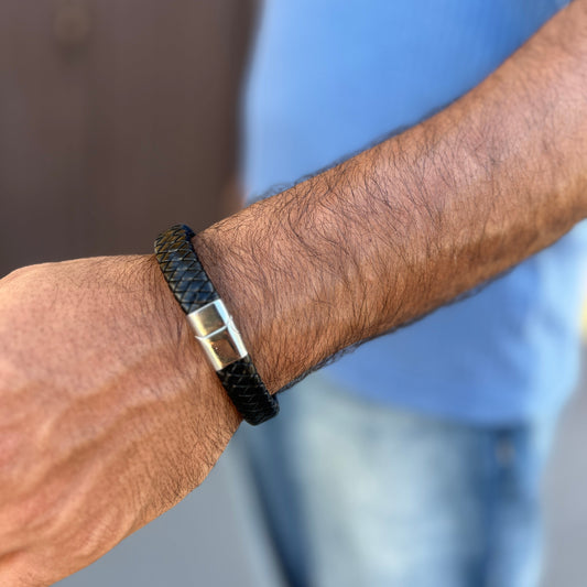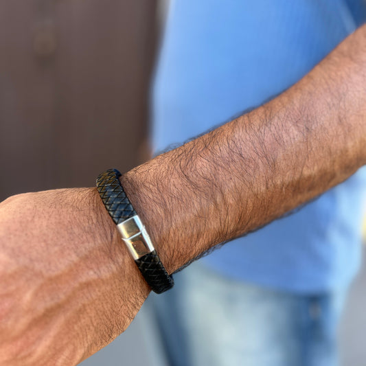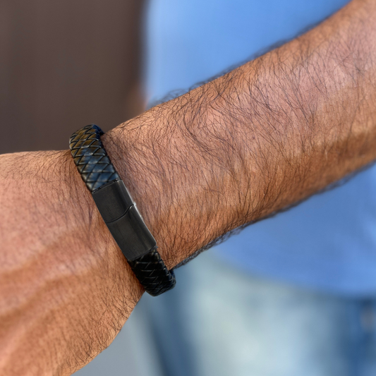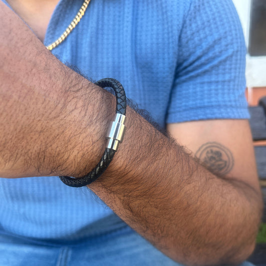 Pulsera de Cuero Trenzado con Cierre Magnético de Stainless Steel