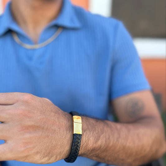 Pulsera de Cuero Trenzado con Cierre Dorado Magnético de Stainless Steel