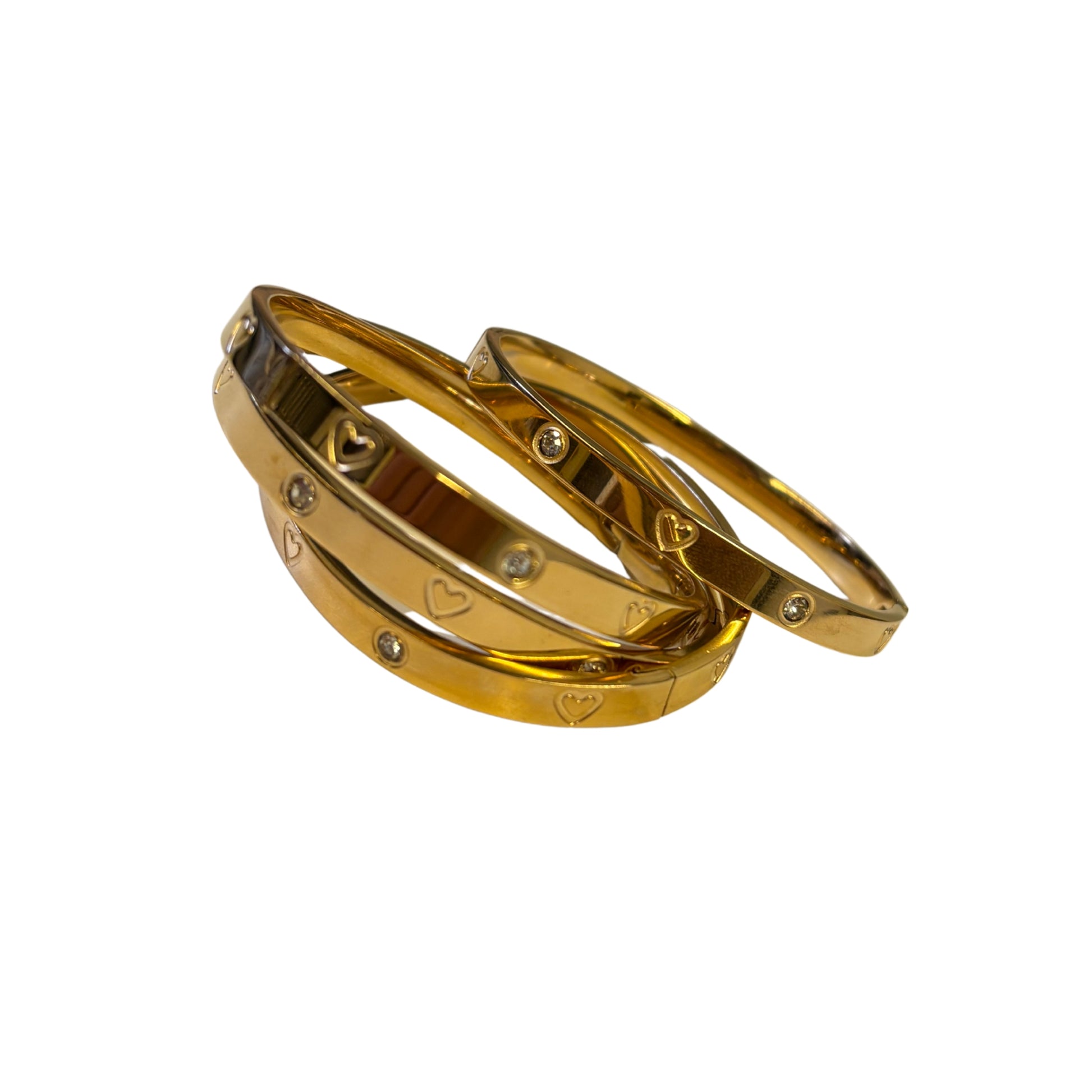 Pulsera de Stainless Steel con Corazón y Rhinestones, Dorada
