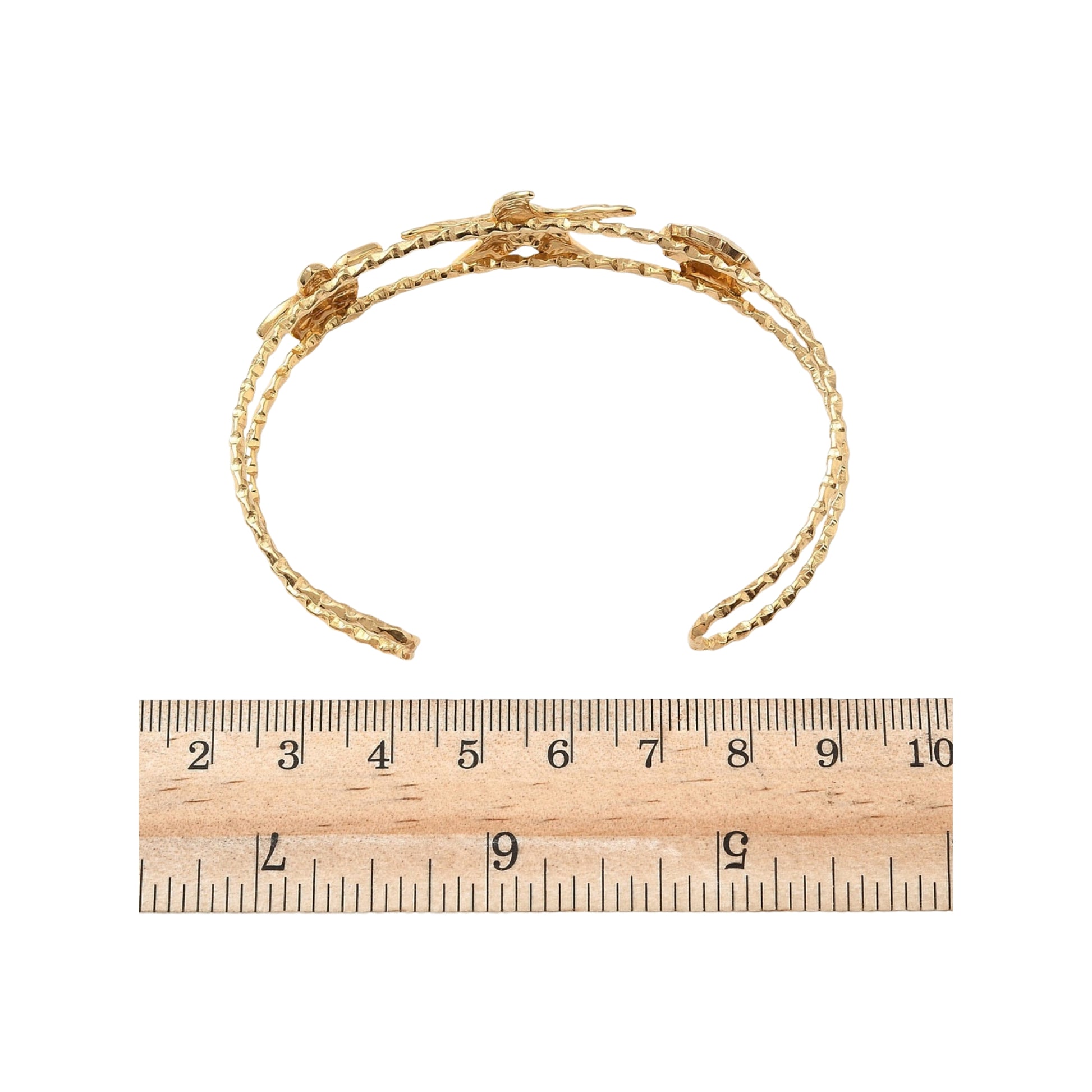 - Diseño: Pulsera tipo cuff con detalles marinos: estrella de mar, tortuga y concha.