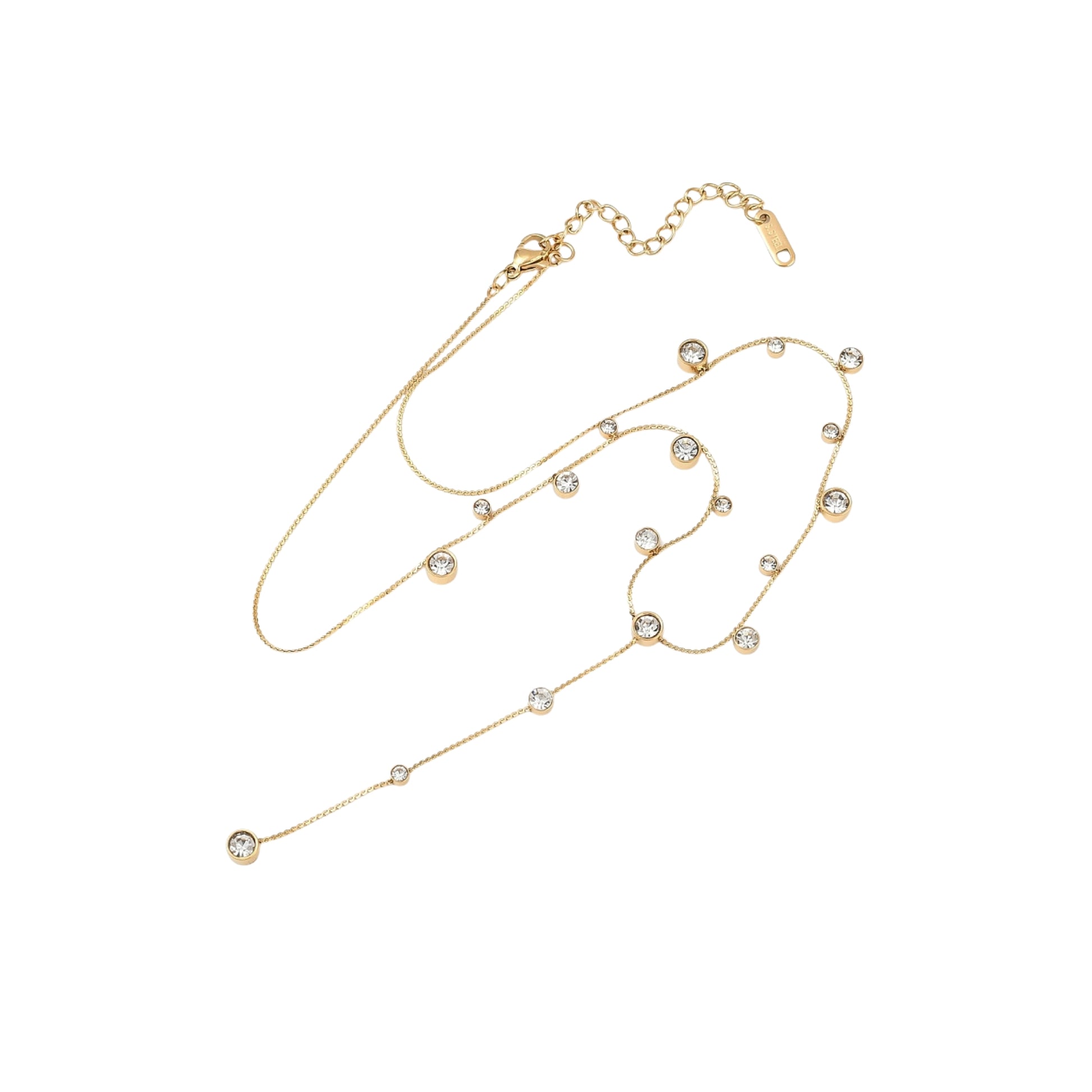 Collar Tipo Y de Stainless Steel con Cadena de Eslabones y Zirconia Cúbica, Dorado