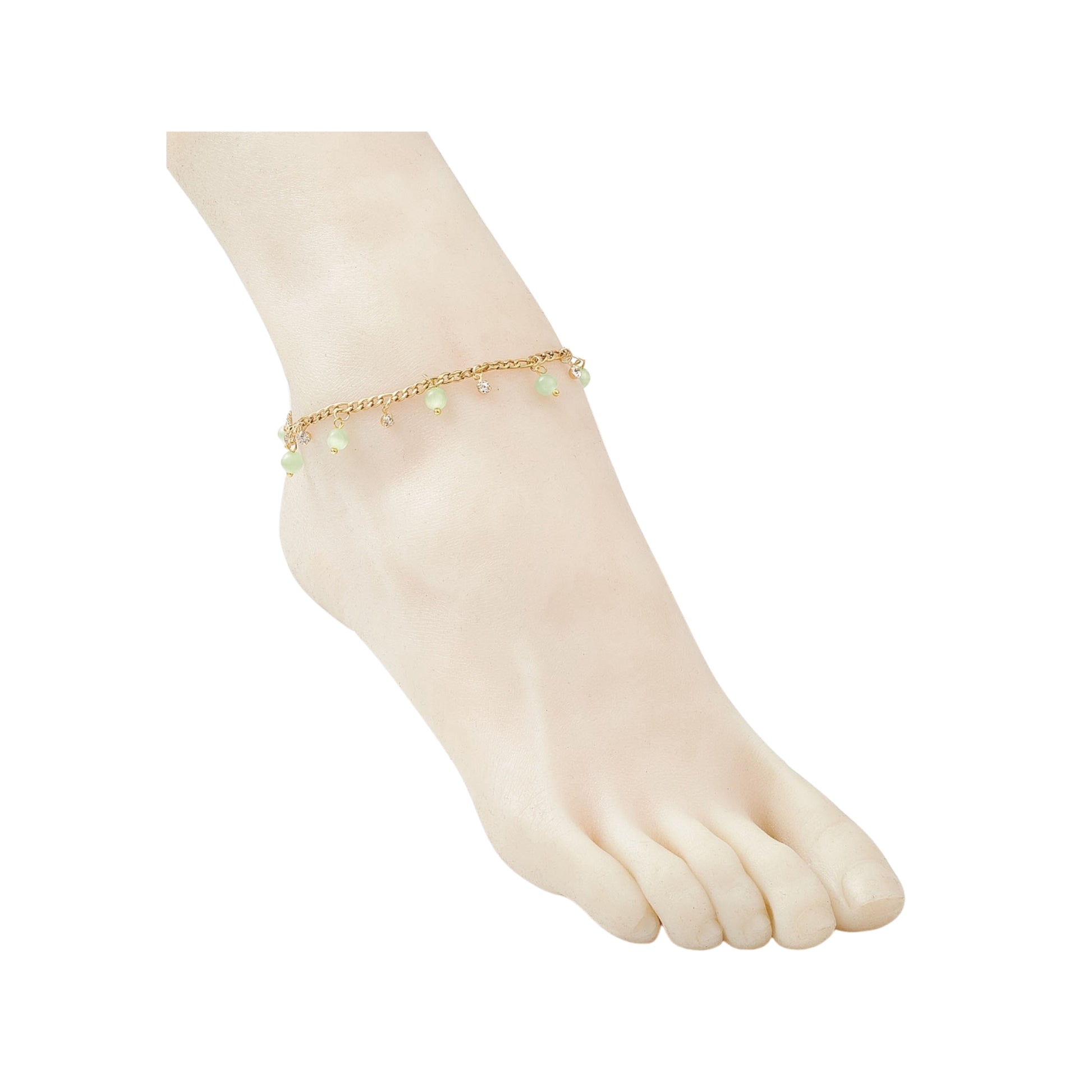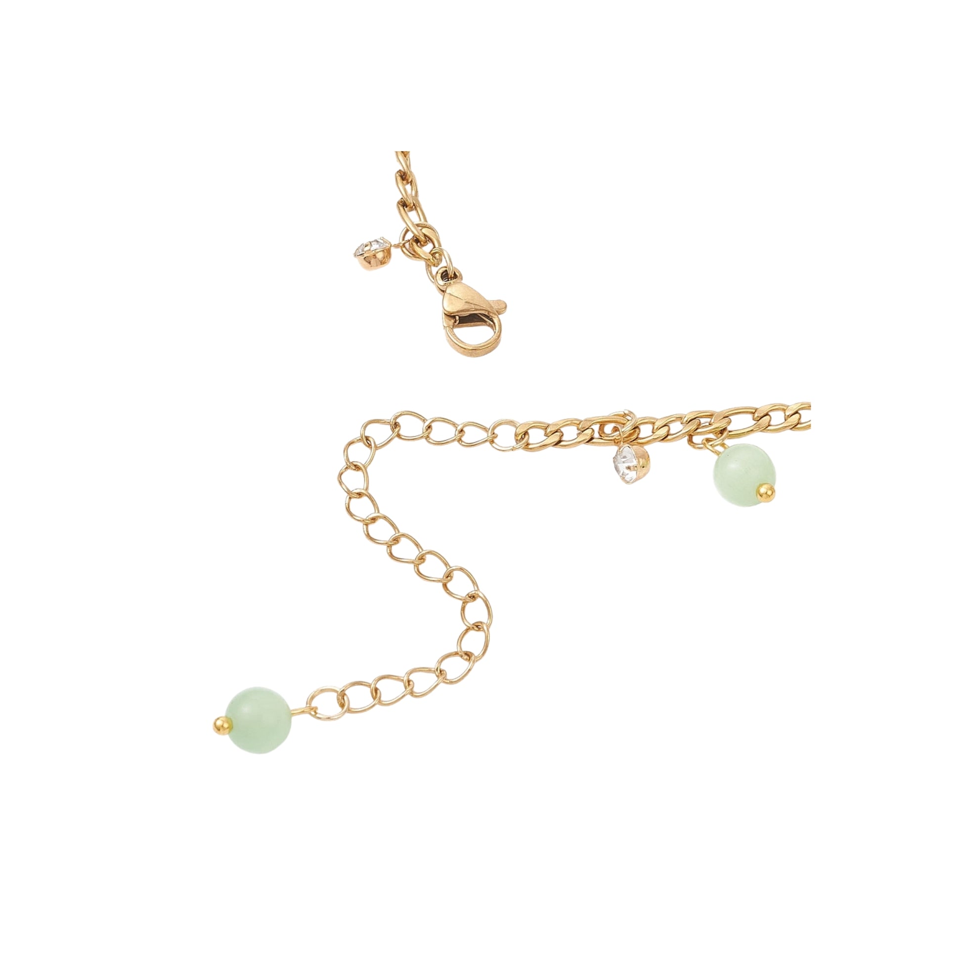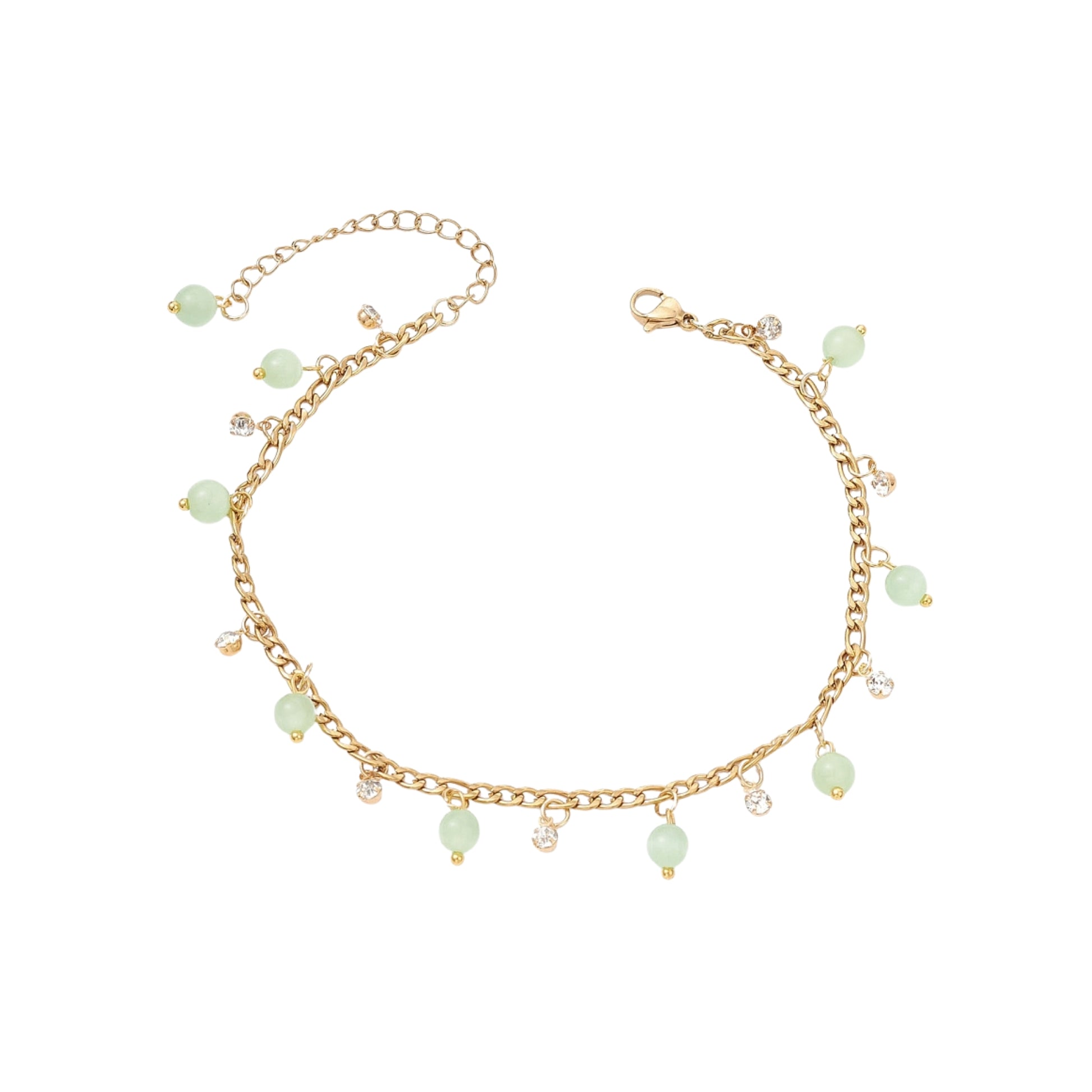 - Diseño: Tobillera con cadena retorcida, charms redondos en color aquamarina.
