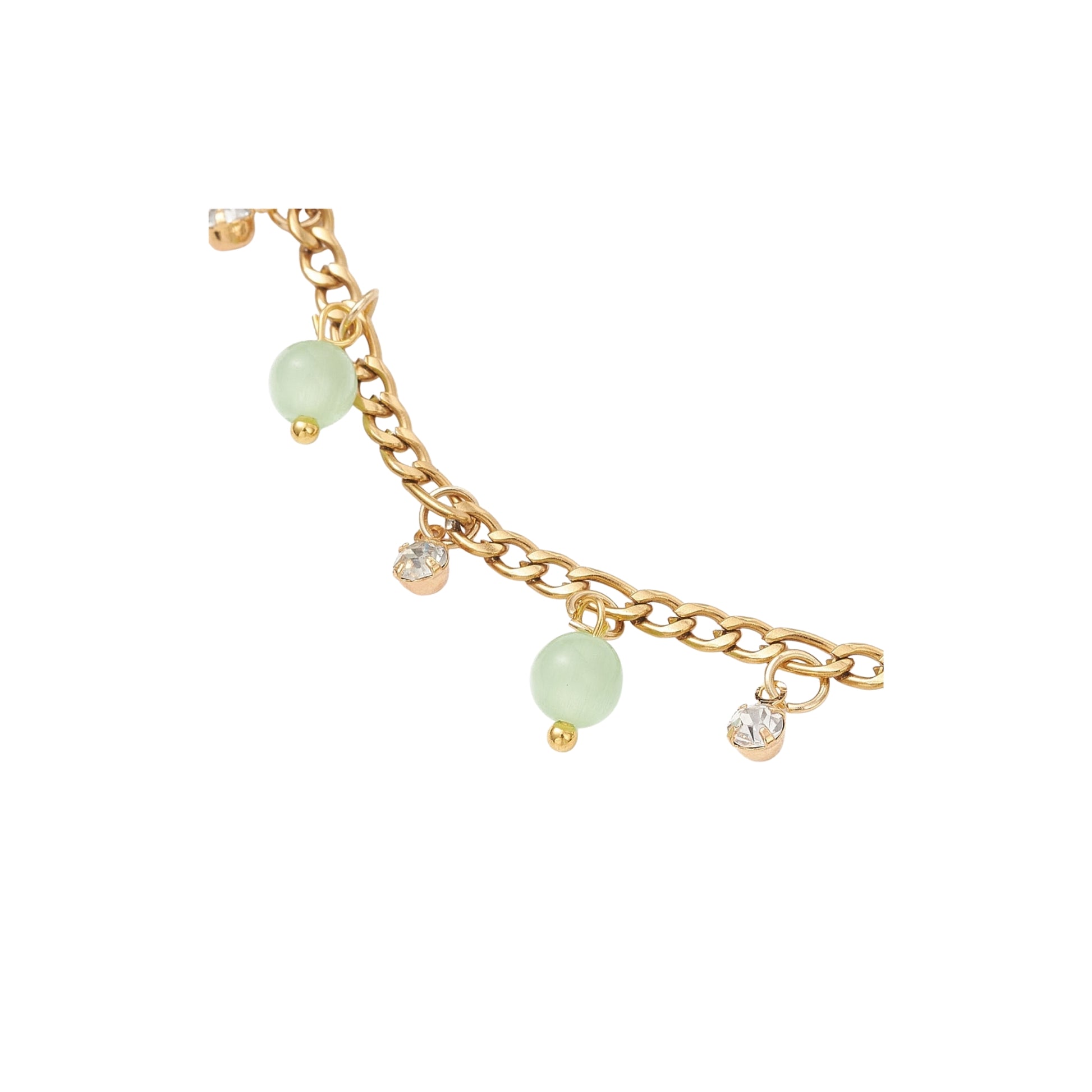 Tobillera de Stainless Steel con Cadena Retorcida y Cat Eye, Dorada
