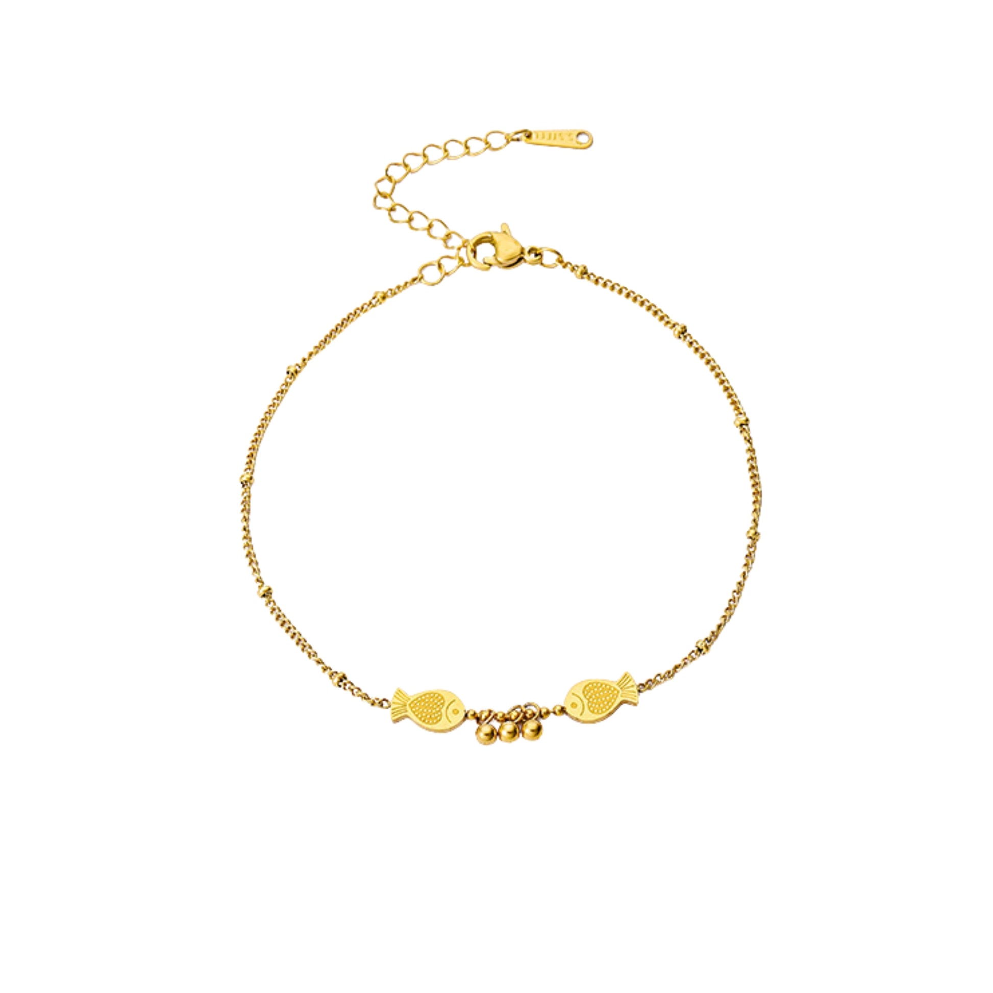 Tobillera de Stainless Steel con Diseño de Peces, Dorada