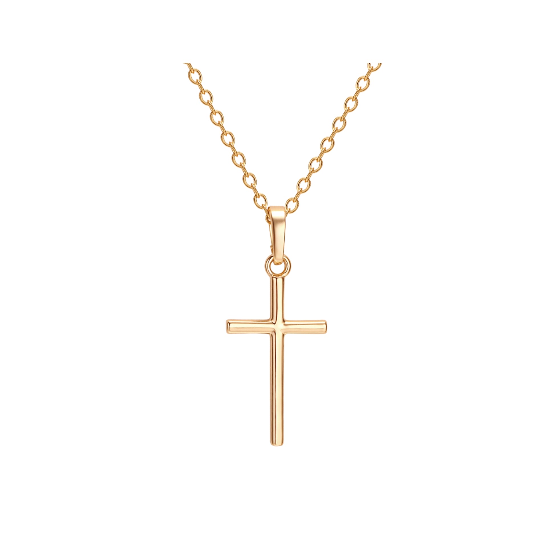 Collar de Brass con Charm de Cruz, Bañado en Oro 18K