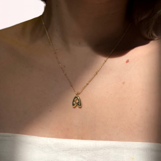 Collar con Charm de Letra con Colores en Stainless Steel Dorado 18K