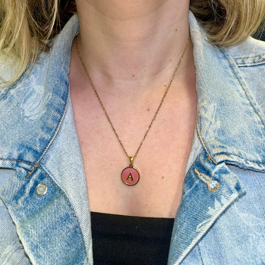 Collar con Charm de Inicial en Chapa Rosada en Stainless Steel Dorado 18K