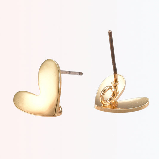 Pantallas Stud de Brass Dorado 18K con Corazón Pequeño Hueco