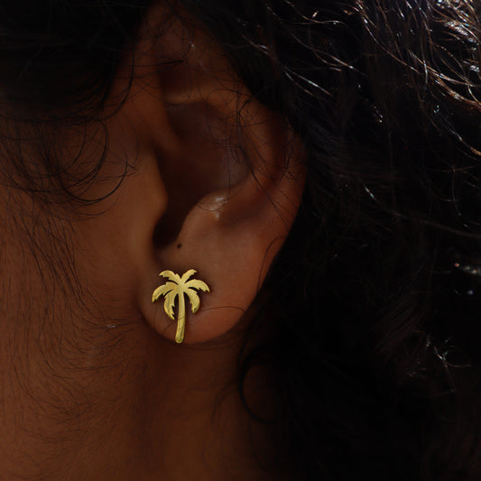 Pantallas Stud con Diseño de Palmera en Stainless Steel Dorado 18K