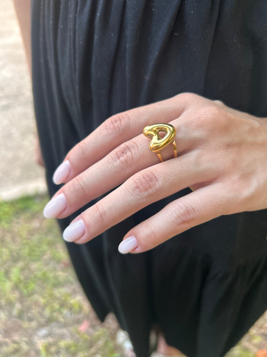Sortija Cuff Abierta de Brass con Diseño de Corazón, Bañada en Oro 18K