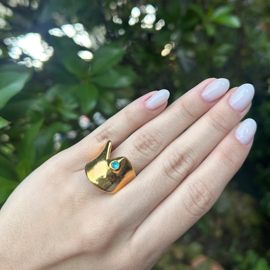 Sortija Cuff de Stainless Steel con Diseño Teardrop, Dorada