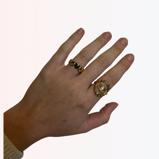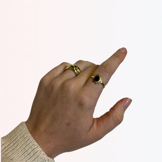 Sortija Cuff Ajustable con Sol Negro en Stainless Steel Dorado 18K