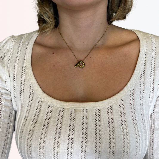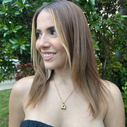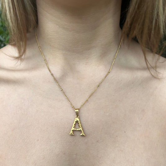 Collar con Charm de Letra con Detalles Acentuados en Stainless Steel Dorado 18K