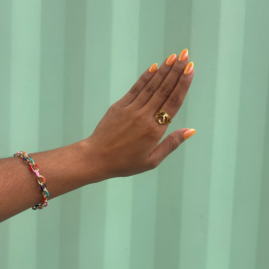 Sortija Ajustable con Iniciales A-Z en Brass Dorado 18K