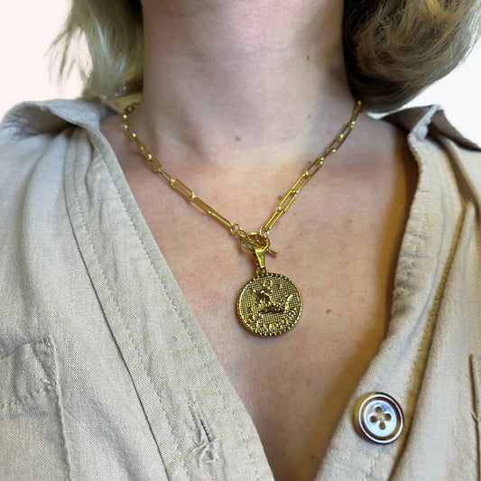 Collar Dorado con Charm de Palma de Coco en Stainless Steel